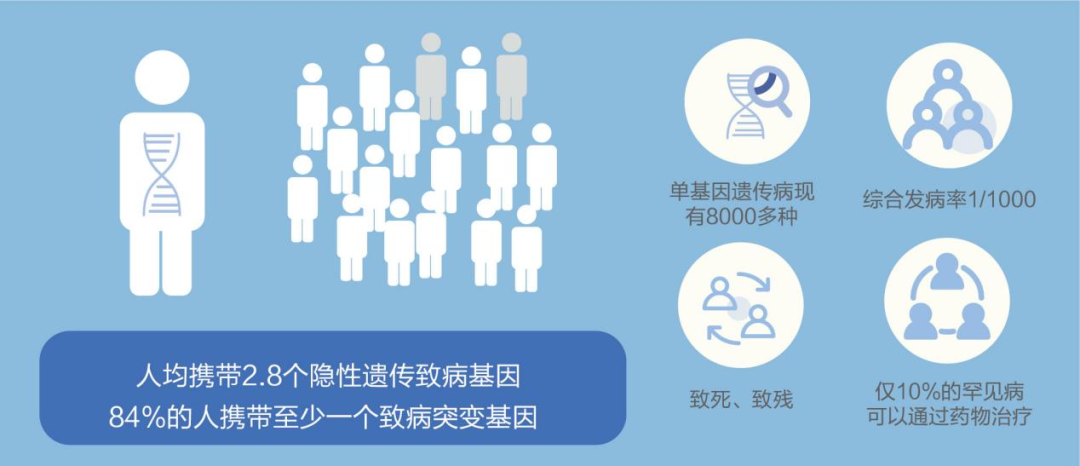 单基因遗传病指受一对等位基因控制的遗传病,携带者筛查(Expanded Carrier Screening, ECS)是指通过先进的基因检测技术,不分种族或地理背景,一次性筛查十几种甚至上百种常染色体隐性或X染色体连锁隐性单基因病。对夫妻双方发病率较高,严重致残、致死的单基因遗传病进行筛查,有助于在孕前及孕早期发现表型正常的携带者,对其进一步进行风险评估和婚育指导,致力于从最早的窗口根本阻断单基因病的发生。